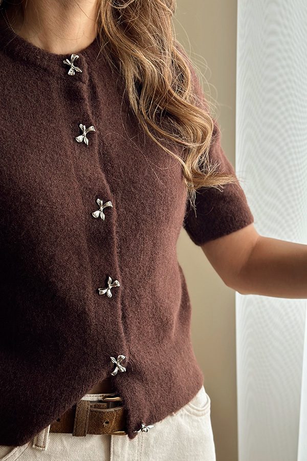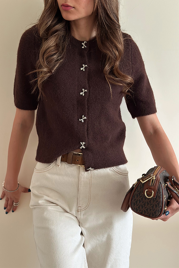 بافت استین کوتاه قهوه ای girl