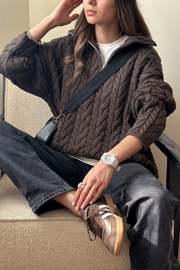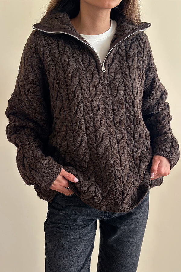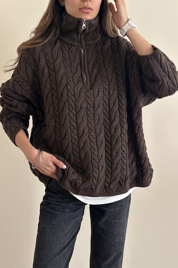 بافت نیم زیپ ترک قهوه ای