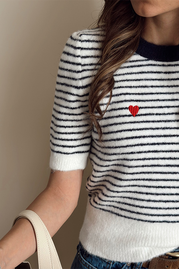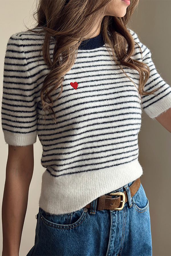 بلوز بافت استین کوتاه Bisou راه راه