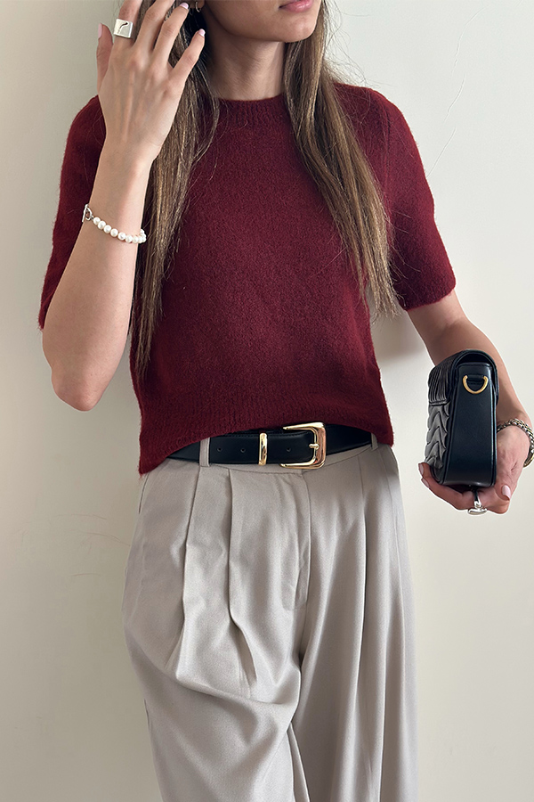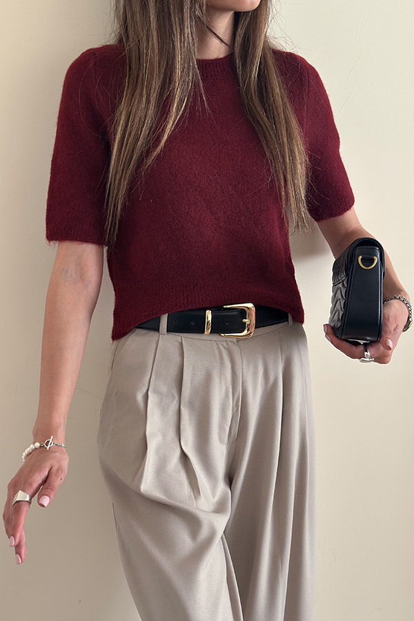 بلوز بافت استین کوتاه madrid ( زرشکی)