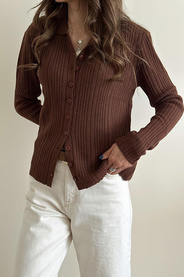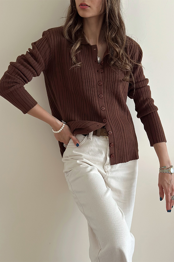 بلوز بافت دکمه دار ترک QUSTYLE قهوه ای
