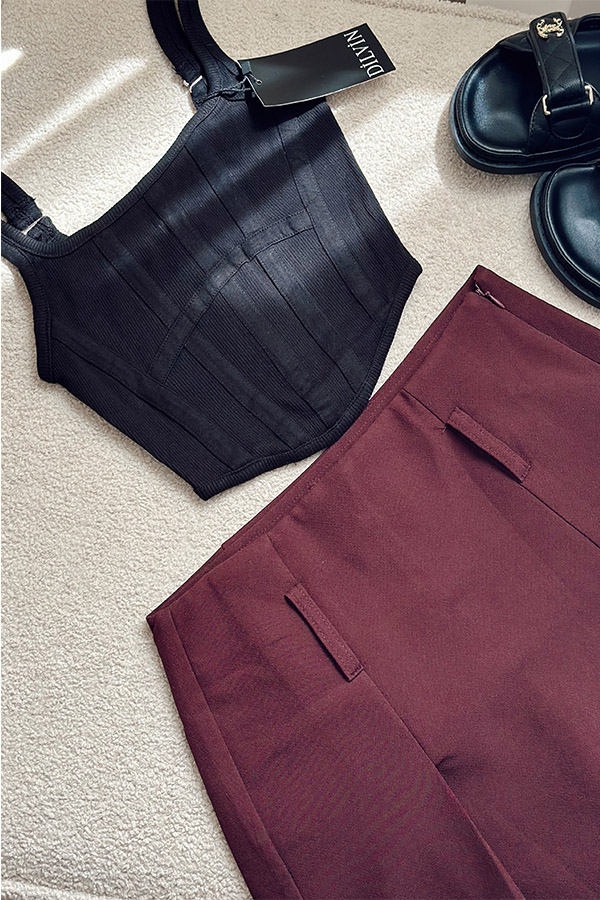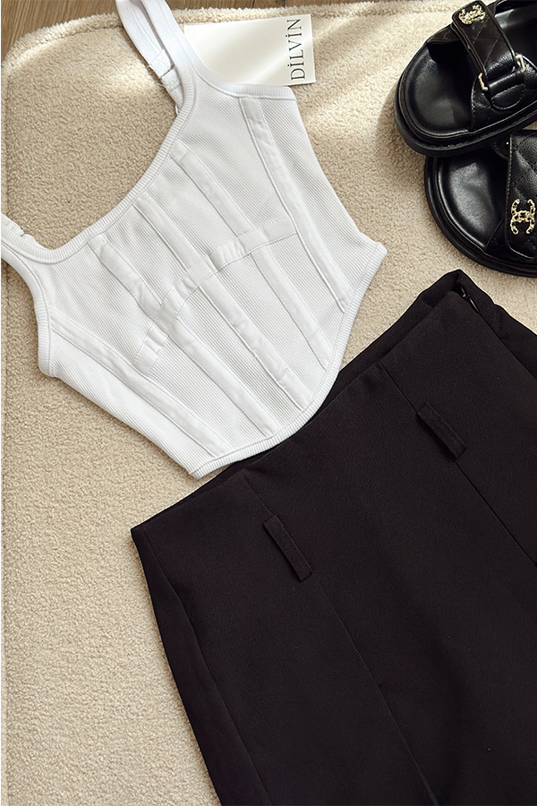 پارچه ی تاپ کاملا کشیه و فیت میشه