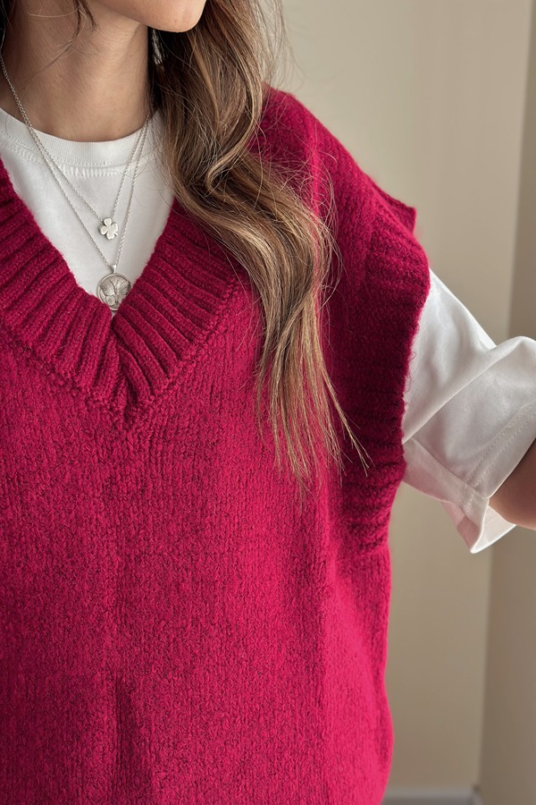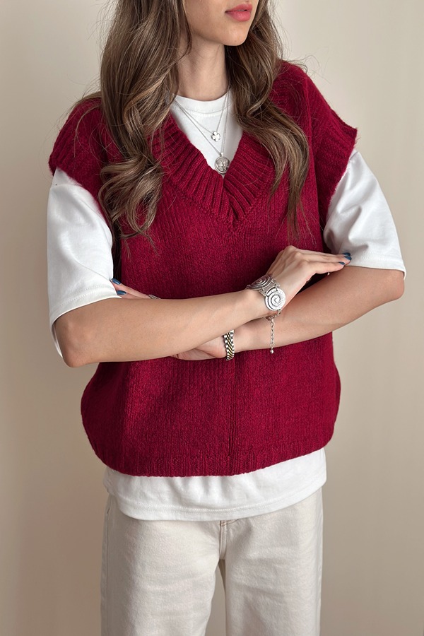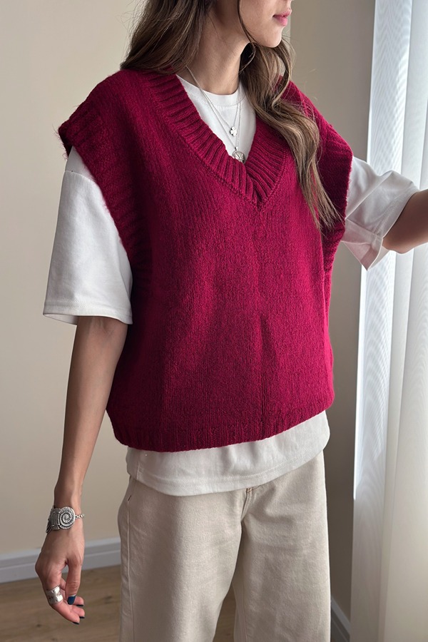 خرید جلیقه بافت ترک زنانه زرشکی