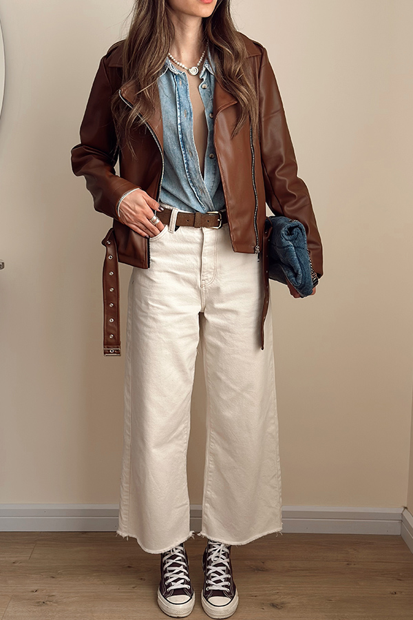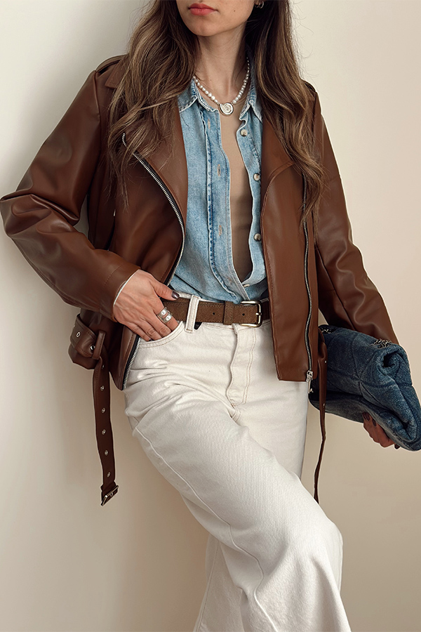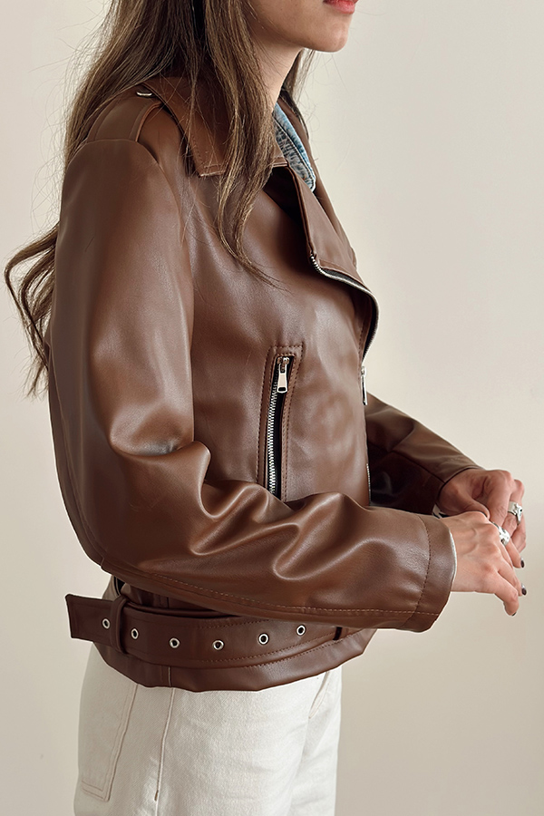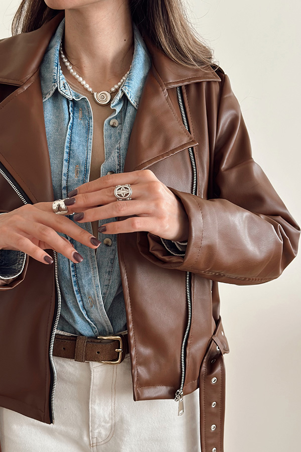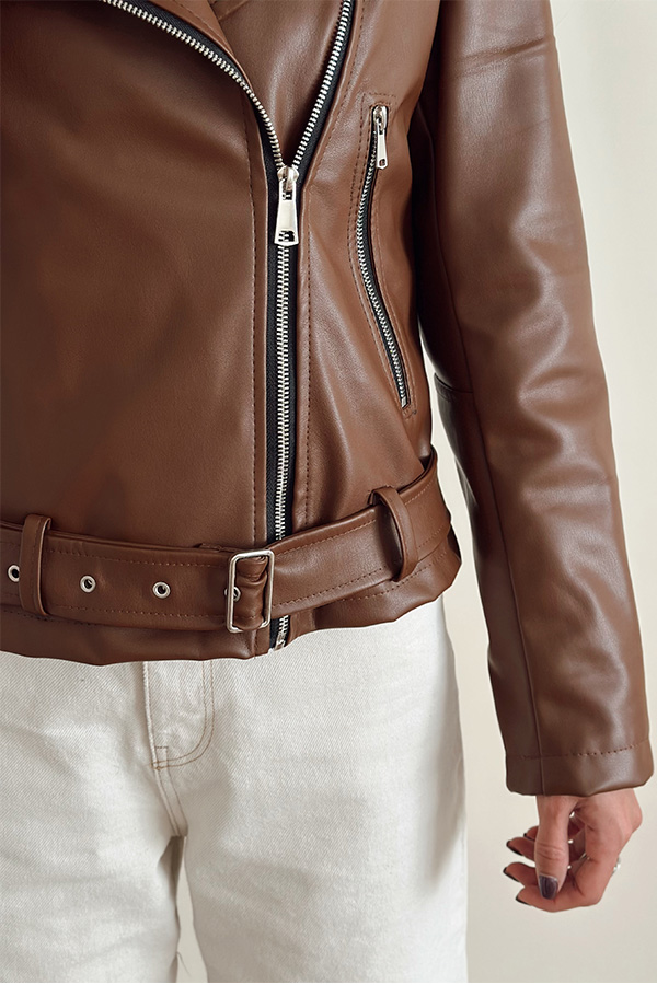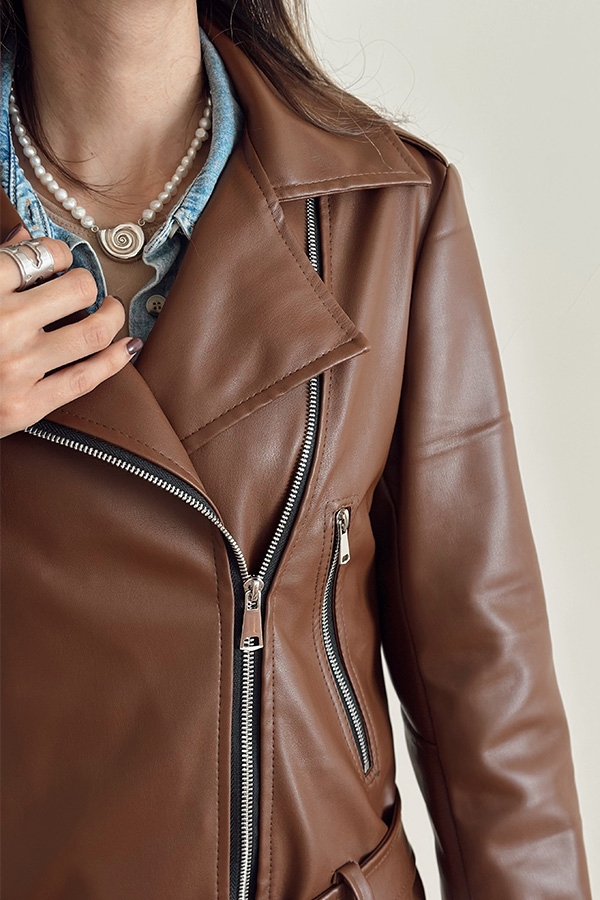 جکت چرم قهوه ای