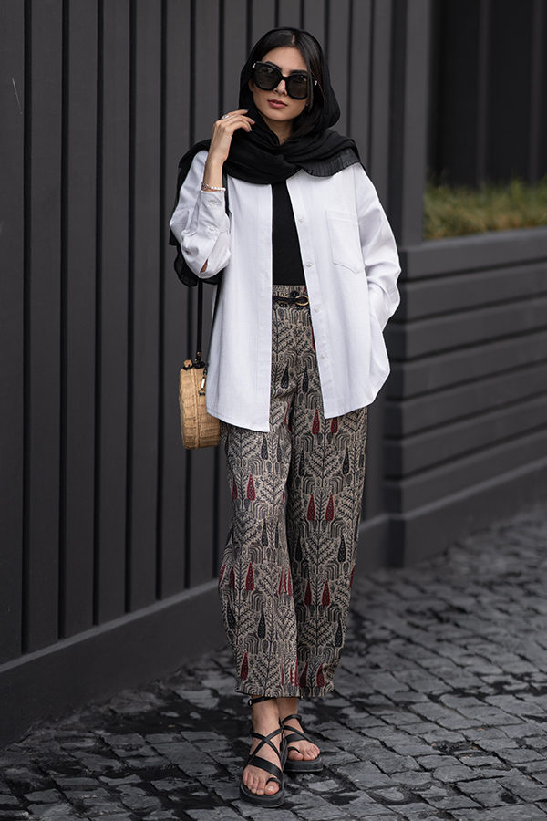 جنس پارچه ی شلوار لینن بسیار لطیف و با کیفیت هندی