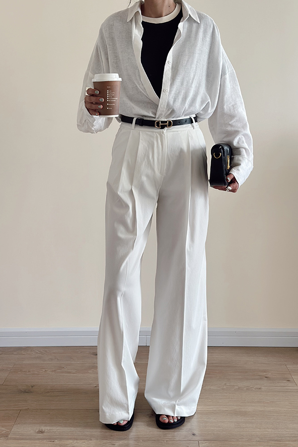 داخل کار تمیز دوزی جذابی داره و شما میتونید کمری شلوار رو تا بزنید و بپوشید که به یه کت کراپ جذاب میشه