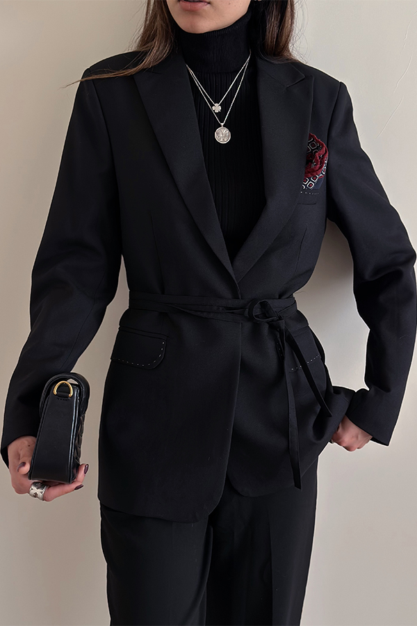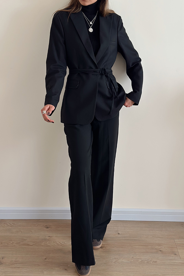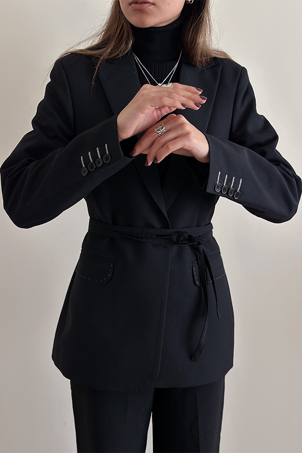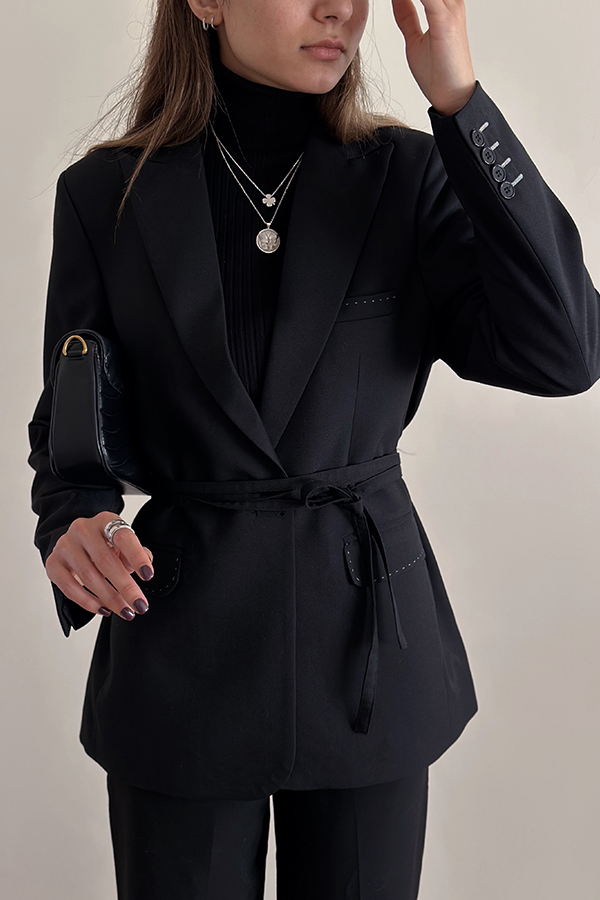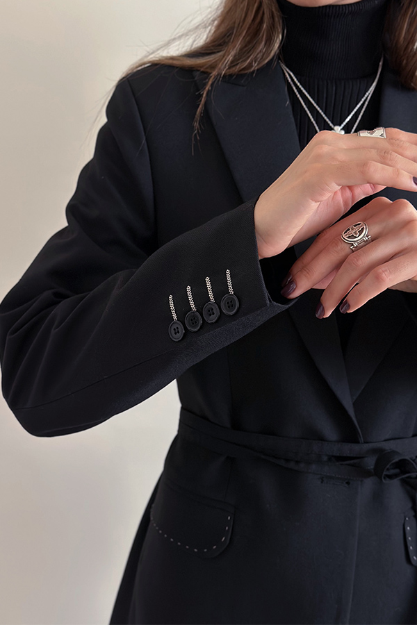 کت فاستونی مشکی بانتو و کمربند دار