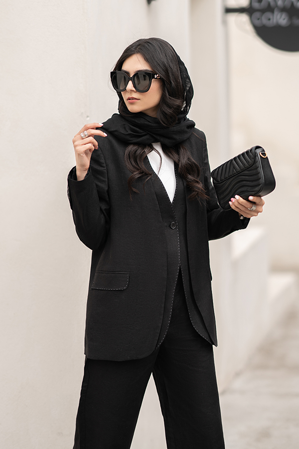 کت لینن مشکی بانتو دار