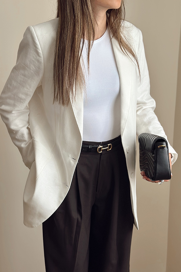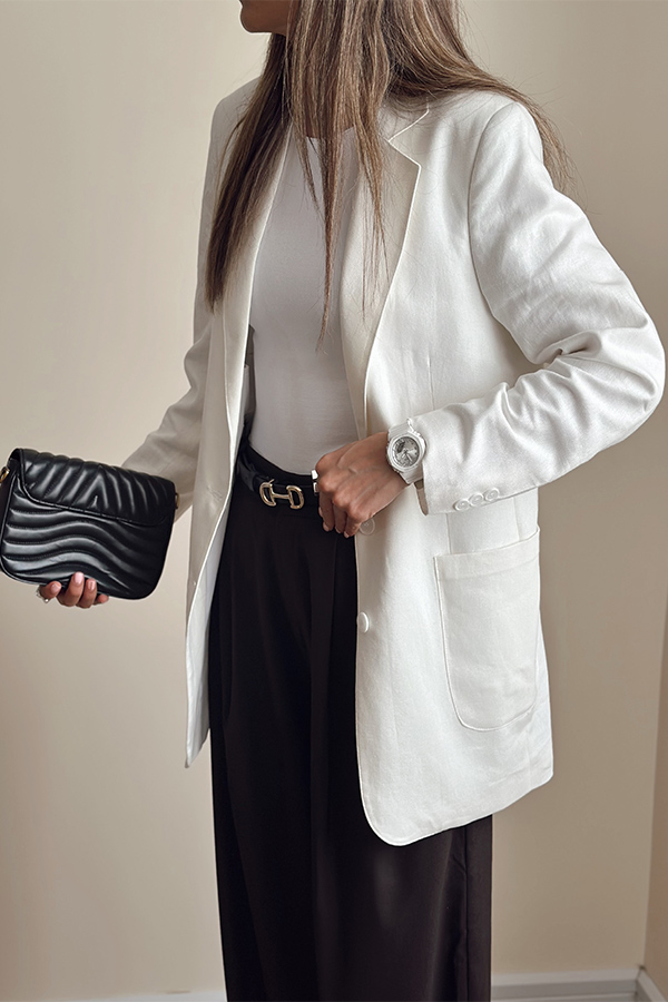 مدل کت : دو دکمه لبه گرد و جیب رو کار دارد